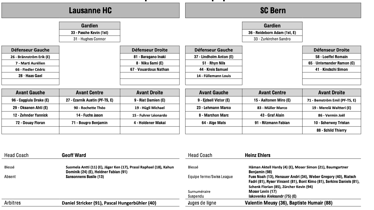 Teamaufstellung und nicht verfügbare Spieler für das Spiel Lausanne vs. Bern 22/12/2025 Follow SwissHabs Neueste Artikel Vor 18 Stunden Vertragsverlängerungen beim EHC Chur Vor 20 Stunden Diego Kostner fällt einige Wochen aus Vor 20 Stunden Pontus Åberg verbringt die nächsten Spiele in Kloten Vor 22 Stunden Zwei weitere Verstärkungen für den EHC Visp Vor 22 Stunden Freudiges Ereignis für die Familie Björninen