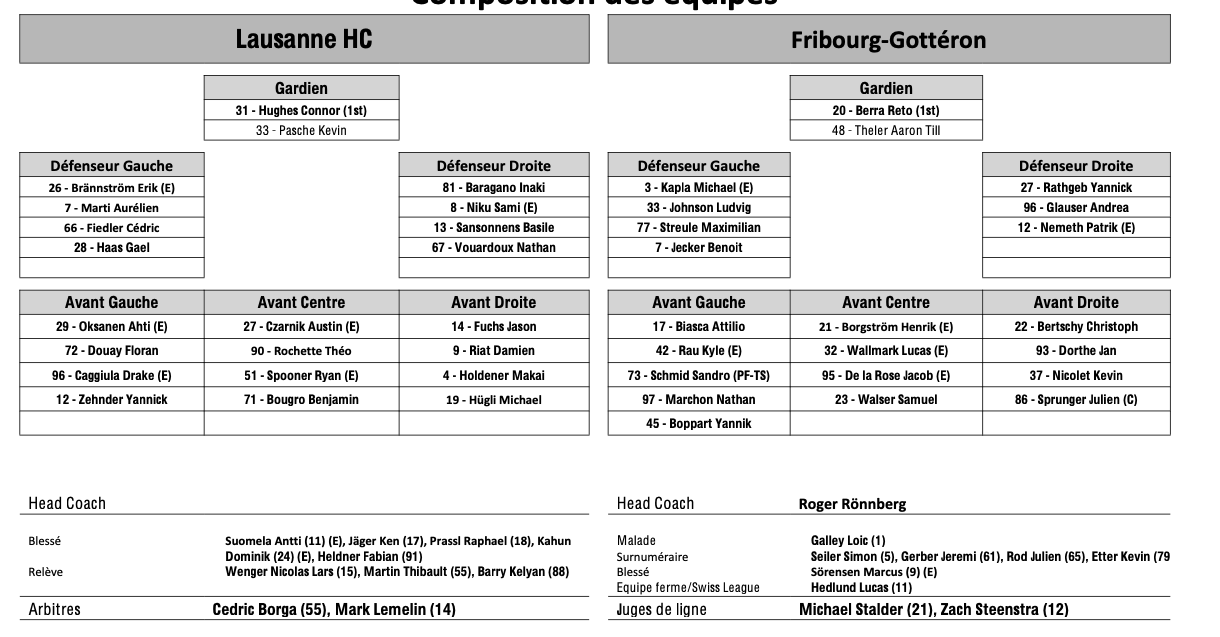 Teamaufstellung und nicht verfügbare Spieler für das Spiel Lausanne vs. Fribourg 10/01/2026 Follow SwissHabs Neueste Artikel Vor 18 Stunden Vertragsverlängerungen beim EHC Chur Vor 20 Stunden Diego Kostner fällt einige Wochen aus Vor 20 Stunden Pontus Åberg verbringt die nächsten Spiele in Kloten Vor 22 Stunden Zwei weitere Verstärkungen für den EHC Visp Vor 22 Stunden Freudiges Ereignis für die Familie Björninen