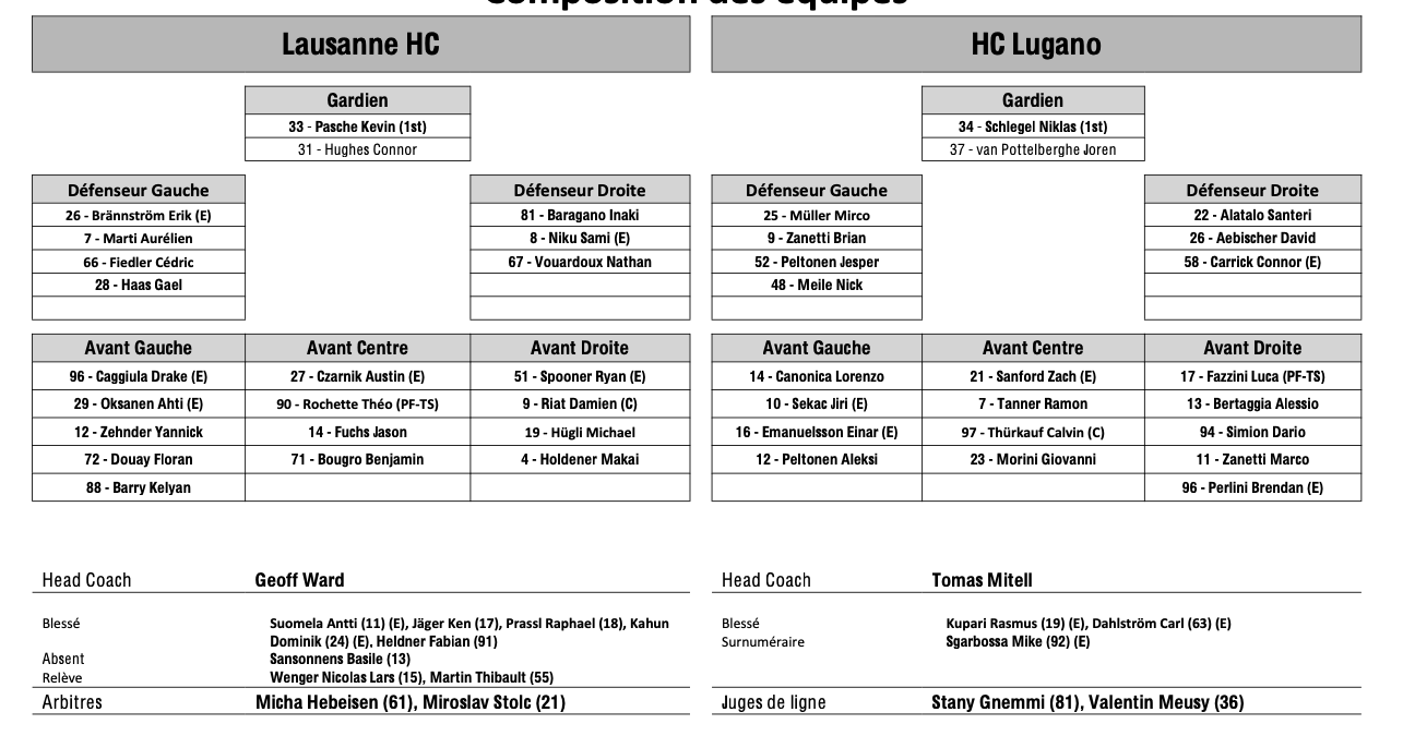 Teamaufstellung und nicht verfügbare Spieler für das Spiel Lausanne vs. Lugano 07/01/2026 Follow SwissHabs Neueste Artikel Vor 18 Stunden Vertragsverlängerungen beim EHC Chur Vor 20 Stunden Diego Kostner fällt einige Wochen aus Vor 20 Stunden Pontus Åberg verbringt die nächsten Spiele in Kloten Vor 22 Stunden Zwei weitere Verstärkungen für den EHC Visp Vor 22 Stunden Freudiges Ereignis für die Familie Björninen