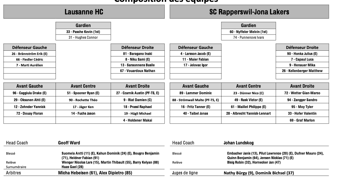 Teamaufstellung und nicht verfügbare Spieler für das Spiel Lausanne vs. Rapperswil 18/01/2026 Follow SwissHabs Neueste Artikel Vor 18 Stunden Vertragsverlängerungen beim EHC Chur Vor 20 Stunden Diego Kostner fällt einige Wochen aus Vor 20 Stunden Pontus Åberg verbringt die nächsten Spiele in Kloten Vor 22 Stunden Zwei weitere Verstärkungen für den EHC Visp Vor 22 Stunden Freudiges Ereignis für die Familie Björninen