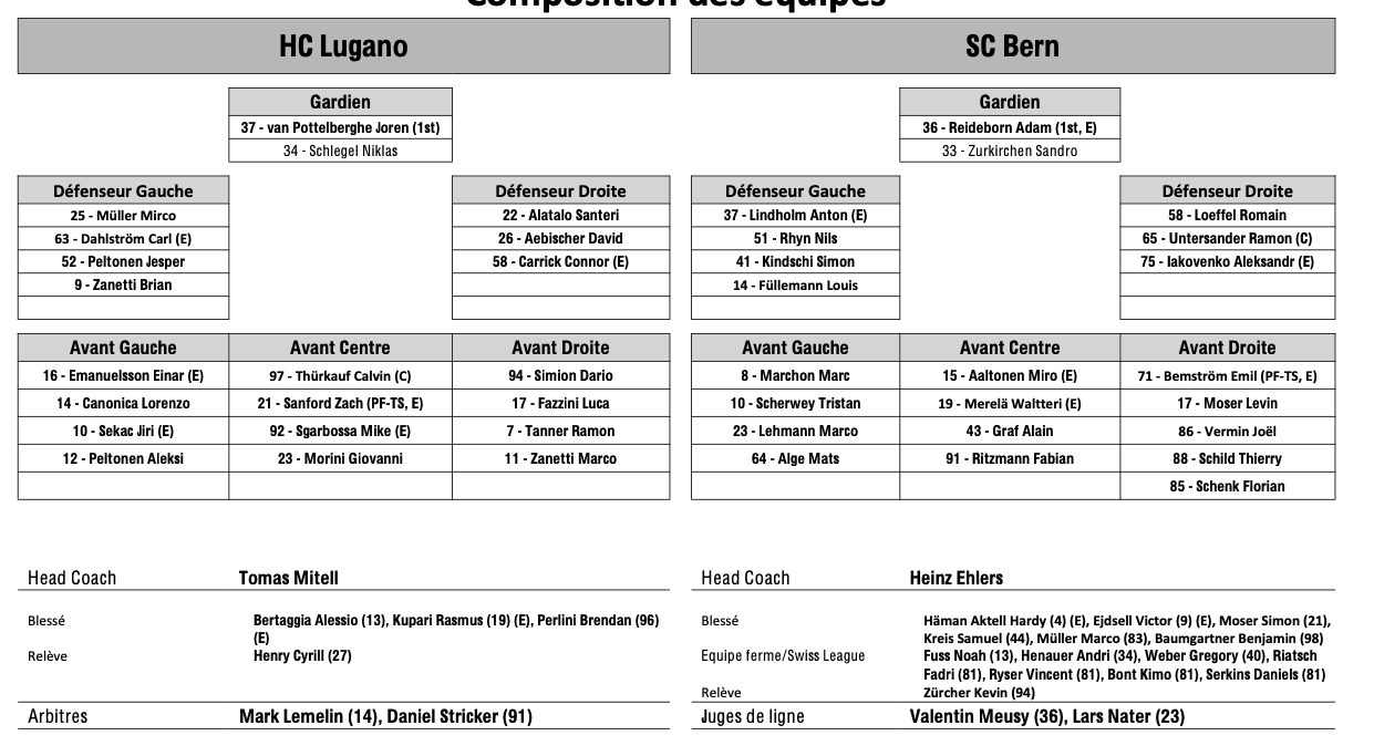 Teamaufstellung und nicht verfügbare Spieler für das Spiel Lugano vs. Bern 07/12/2025 Follow SwissHabs Neueste Artikel Vor 16 Stunden Vertragsverlängerungen beim EHC Chur Vor 18 Stunden Diego Kostner fällt einige Wochen aus Vor 18 Stunden Pontus Åberg verbringt die nächsten Spiele in Kloten Vor 20 Stunden Zwei weitere Verstärkungen für den EHC Visp Vor 20 Stunden Freudiges Ereignis für die Familie Björninen