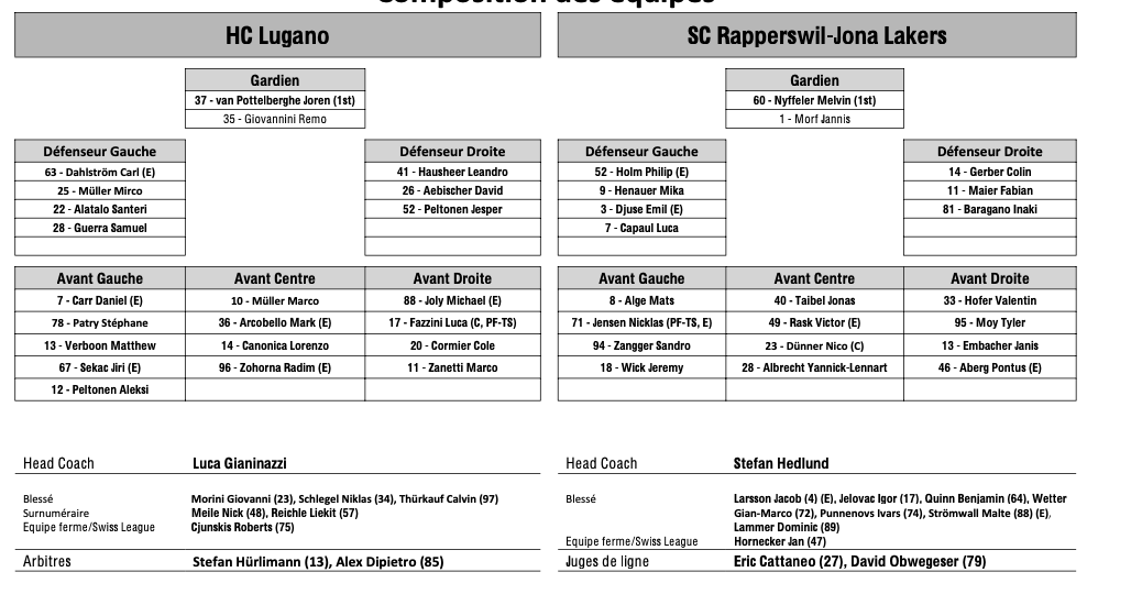 Teamaufstellung und nicht verfügbare Spieler für das Spiel Lugano vs Rapperswil 06/10/2024 Follow SwissHabs Neueste Artikel Vor einer Stunde Nolan Diem verstärkt den HC Ajoie Vor 2 Stunden SC Bern: Aktuelle Informationen zum Kader Vor 3 Stunden Raphael Diaz feiert Comeback gegen Freiburg Vor 3 Stunden Gemischte Nachrichten zu Marcus Sörensen Vor 4 Stunden Neuer Torhüter für den HC Ajoie verfügbar