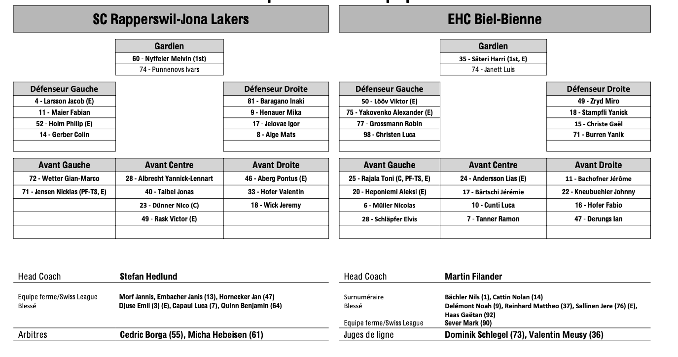 Teamaufstellung und nicht verfügbare Spieler für das Spiel Rapperswil vs Biel 20/09/2024 Follow SwissHabs Neueste Artikel Vor einer Stunde Djurgården hat Emil Bemström weiterhin im Visier Vor 2 Stunden Gregory Hofmann nominiert für das schönste Tor der Champions Hockey League Saison Vor 3 Stunden Neuzugang beim HC Ajoie: Matthew Kellenberger unterschreibt Vor 4 Stunden Ein Spiel Sperre und eine Geldstrafe gegen Jens Nater Vor 6 Stunden Markus Korhonen wechselt nach Kloten, Simo Vehviläinen übernimmt seinen Posten