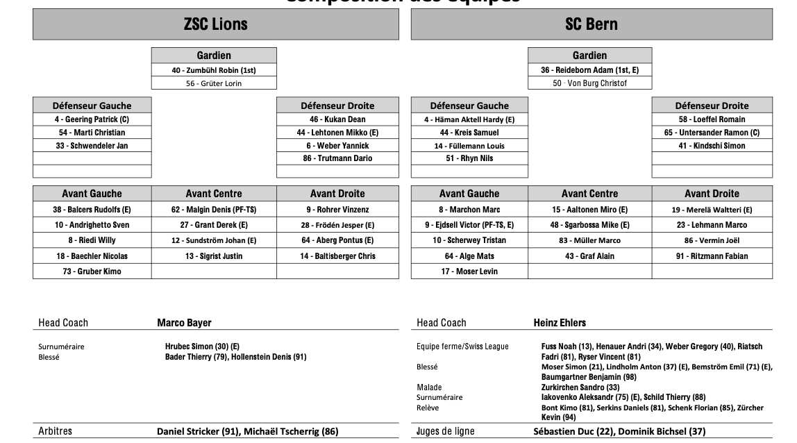 Teamaufstellung und nicht verfügbare Spieler für das Spiel Zürich vs. Bern 17/01/2026 Follow SwissHabs Neueste Artikel Vor 18 Stunden Vertragsverlängerungen beim EHC Chur Vor 20 Stunden Diego Kostner fällt einige Wochen aus Vor 20 Stunden Pontus Åberg verbringt die nächsten Spiele in Kloten Vor 22 Stunden Zwei weitere Verstärkungen für den EHC Visp Vor 22 Stunden Freudiges Ereignis für die Familie Björninen