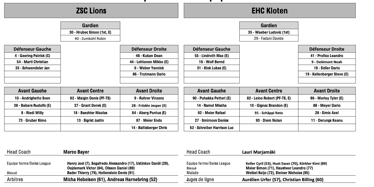 Teamaufstellung und nicht verfügbare Spieler für das Spiel Zürich vs. Kloten 11/01/2026 Follow SwissHabs Neueste Artikel Vor 18 Stunden Vertragsverlängerungen beim EHC Chur Vor 20 Stunden Diego Kostner fällt einige Wochen aus Vor 20 Stunden Pontus Åberg verbringt die nächsten Spiele in Kloten Vor 22 Stunden Zwei weitere Verstärkungen für den EHC Visp Vor 22 Stunden Freudiges Ereignis für die Familie Björninen