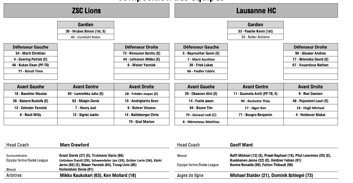 Teamaufstellung und nicht verfügbare Spieler für das Spiel Zürich vs. Lausanne 05/10/2024 Follow SwissHabs Neueste Artikel Vor 8 Minuten HC Ajoie verstärkt sich mit Tarmo Reunanen für Saisonendspurt Vor 19 Minuten Genève-Servette: Drei Spieler fallen aus Vor einer Stunde HC Biel: Verletzungs-Update vor dem wichtigen Spiel in Lugano Vor 3 Stunden Nolan Diem verstärkt den HC Ajoie Vor 4 Stunden SC Bern: Aktuelle Informationen zum Kader
