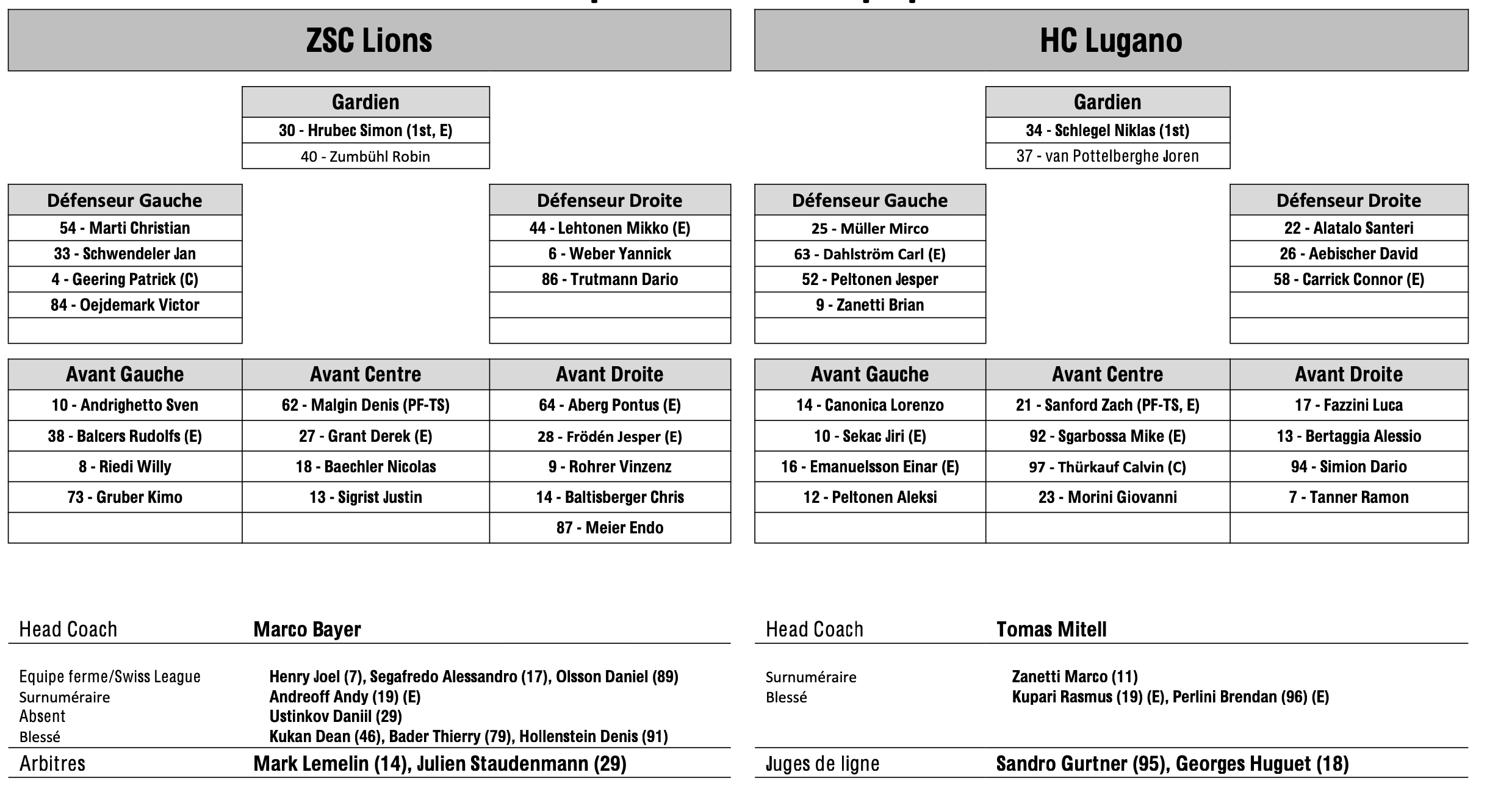 Teamaufstellung und nicht verfügbare Spieler für das Spiel Zürich vs. Lugano 17/12/2025 Follow SwissHabs Neueste Artikel Vor 16 Stunden Vertragsverlängerungen beim EHC Chur Vor 18 Stunden Diego Kostner fällt einige Wochen aus Vor 18 Stunden Pontus Åberg verbringt die nächsten Spiele in Kloten Vor 20 Stunden Zwei weitere Verstärkungen für den EHC Visp Vor 20 Stunden Freudiges Ereignis für die Familie Björninen
