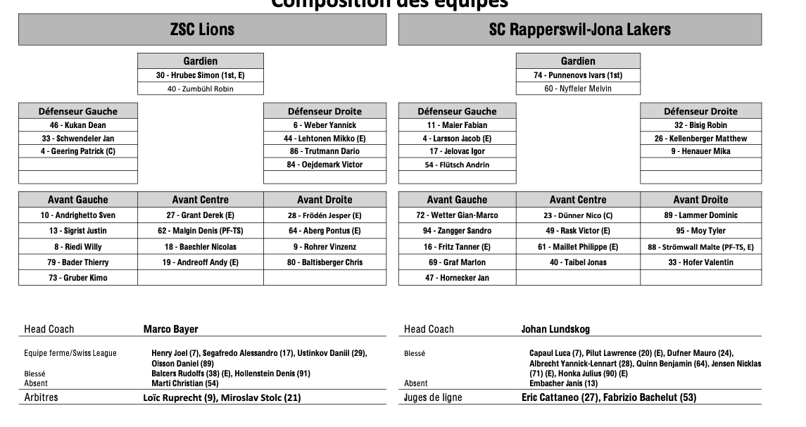 Teamaufstellung und nicht verfügbare Spieler für das Spiel Zürich vs. Rapperswil 07/12/2025 Follow SwissHabs Neueste Artikel Vor 16 Stunden Vertragsverlängerungen beim EHC Chur Vor 18 Stunden Diego Kostner fällt einige Wochen aus Vor 18 Stunden Pontus Åberg verbringt die nächsten Spiele in Kloten Vor 20 Stunden Zwei weitere Verstärkungen für den EHC Visp Vor 20 Stunden Freudiges Ereignis für die Familie Björninen
