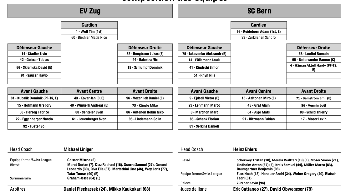 Teamaufstellung und nicht verfügbare Spieler für das Spiel Zug vs. Bern 25/11/2025 Follow SwissHabs Neueste Artikel Vor 8 Minuten Raphael Diaz feiert Comeback gegen Freiburg Vor 34 Minuten Gemischte Nachrichten zu Marcus Sörensen Vor 47 Minuten Neuer Torhüter für den HC Ajoie verfügbar Vor einer Stunde SwissHabs: Frische Updates für die Hockey-Seite Vor 21 Stunden Vertragsverlängerungen beim EHC Chur