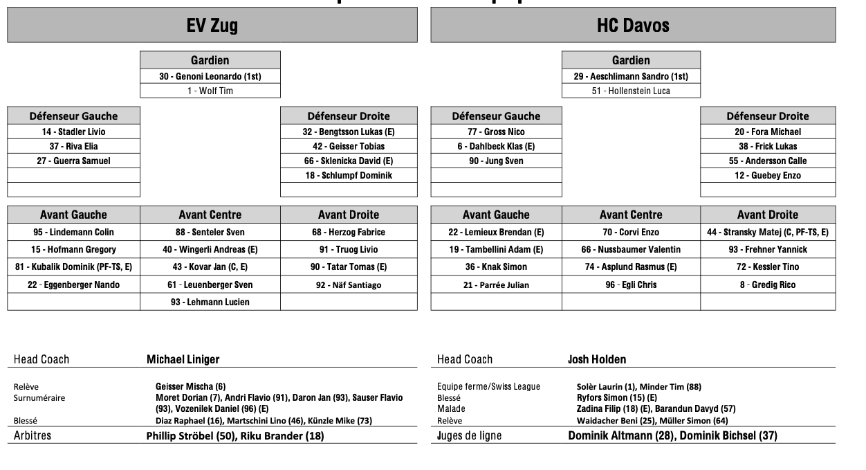 Teamaufstellung und nicht verfügbare Spieler für das Spiel Zug vs. Davos 23/12/2025 Follow SwissHabs Neueste Artikel Vor 18 Stunden Vertragsverlängerungen beim EHC Chur Vor 20 Stunden Diego Kostner fällt einige Wochen aus Vor 20 Stunden Pontus Åberg verbringt die nächsten Spiele in Kloten Vor 22 Stunden Zwei weitere Verstärkungen für den EHC Visp Vor 22 Stunden Freudiges Ereignis für die Familie Björninen