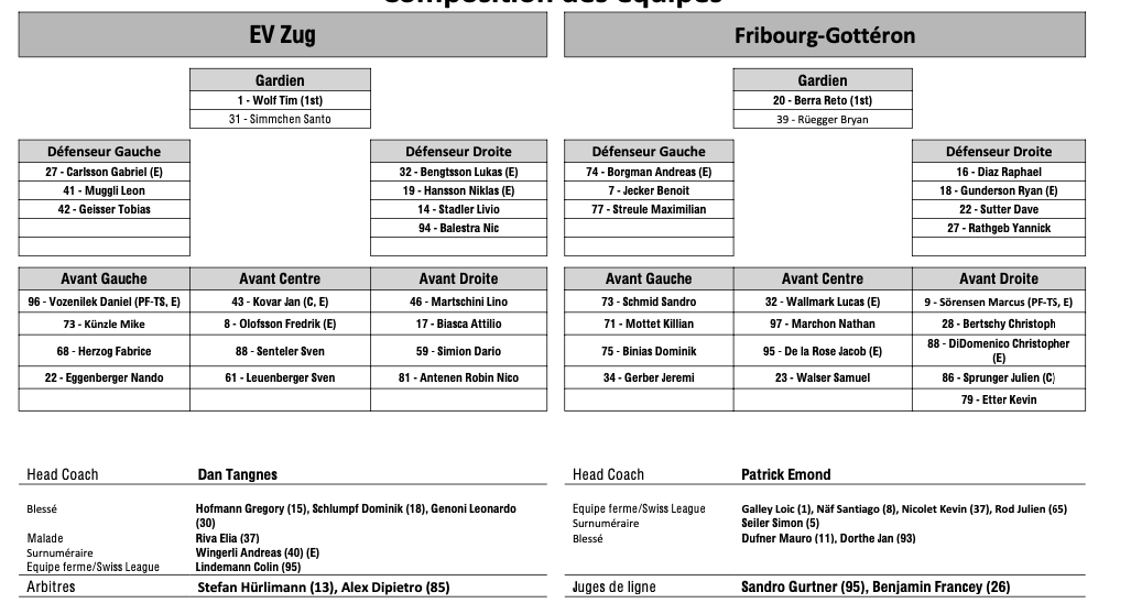 Teamaufstellung und nicht verfügbare Spieler für das Spiel Zug vs. Fribourg 18/10/2024 Follow SwissHabs Neueste Artikel Vor 19 Stunden Vertragsverlängerungen beim EHC Chur Vor 21 Stunden Diego Kostner fällt einige Wochen aus Vor 21 Stunden Pontus Åberg verbringt die nächsten Spiele in Kloten Vor 23 Stunden Zwei weitere Verstärkungen für den EHC Visp Vor 23 Stunden Freudiges Ereignis für die Familie Björninen
