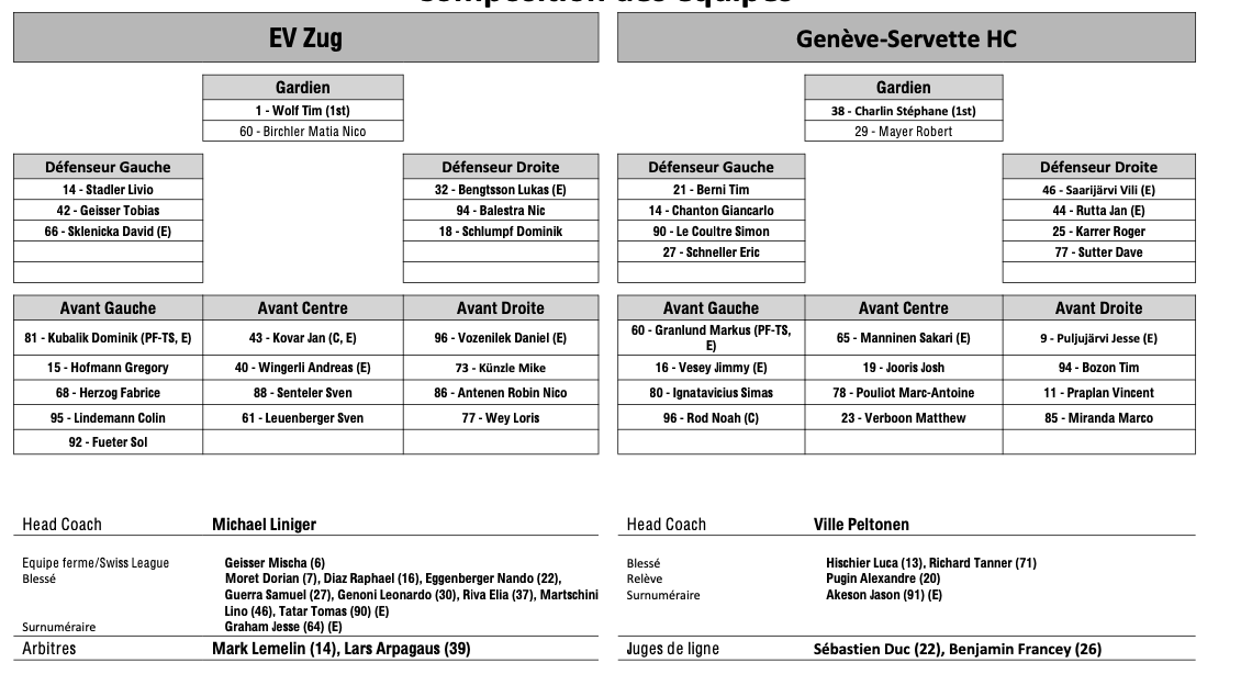 Teamaufstellung und nicht verfügbare Spieler für das Spiel Zug vs. Genf 27/11/2025 Follow SwissHabs Neueste Artikel Vor 8 Minuten Raphael Diaz feiert Comeback gegen Freiburg Vor 34 Minuten Gemischte Nachrichten zu Marcus Sörensen Vor 47 Minuten Neuer Torhüter für den HC Ajoie verfügbar Vor einer Stunde SwissHabs: Frische Updates für die Hockey-Seite Vor 21 Stunden Vertragsverlängerungen beim EHC Chur