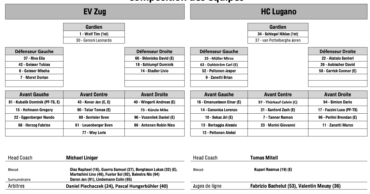 Teamaufstellung und nicht verfügbare Spieler für das Spiel Zug vs. Lugano 14/01/2026 Follow SwissHabs Neueste Artikel Vor 18 Stunden Vertragsverlängerungen beim EHC Chur Vor 20 Stunden Diego Kostner fällt einige Wochen aus Vor 20 Stunden Pontus Åberg verbringt die nächsten Spiele in Kloten Vor 22 Stunden Zwei weitere Verstärkungen für den EHC Visp Vor 22 Stunden Freudiges Ereignis für die Familie Björninen