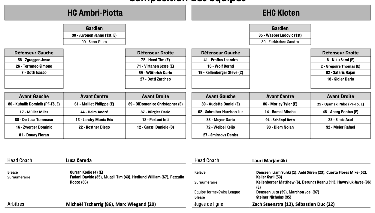 Formation des équipes et joueurs indisponibles pour le match Ambri vs Kloten 08/03/2025 Follow SwissHabs Derniers articles Il y a une heure Laure Mériguet revient sur son expérience olympique Il y a une heure Reto Berra et Damiano Ciaccio ne terminent pas le match Il y a 2 heures La folle et coûteuse nuit dorée de Team USA Il y a 2 heures Seattle prolonge deux attaquants de soutien Il y a 2 heures Retour complet sur la soirée de National League