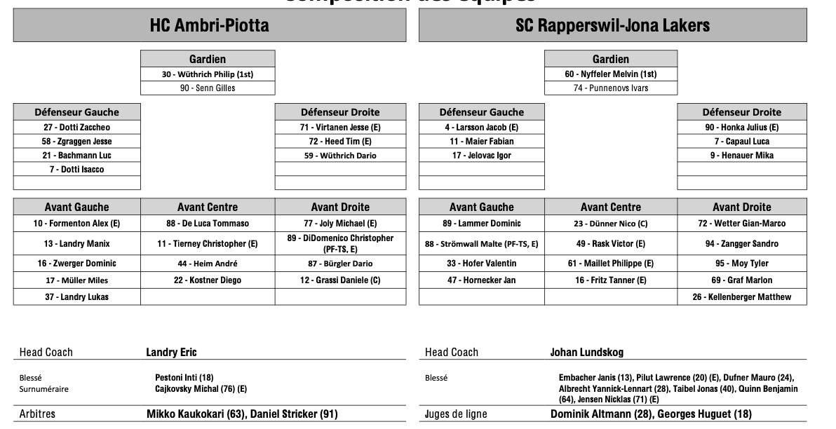 Formation des équipes et joueurs indisponibles pour le match Ambri vs Rapperswil 10/01/2026 Follow SwissHabs Derniers articles Il y a 15 heures Régis Fuchs sera honoré cette semaine Il y a 16 heures Prolongations de contrats à l'EHC Coire Il y a 18 heures Diego Kostner absent quelques semaines Il y a 18 heures Pontus Åberg passera les prochains matchs à Kloten Il y a 20 heures Deux autres renforts pour le HC Viège