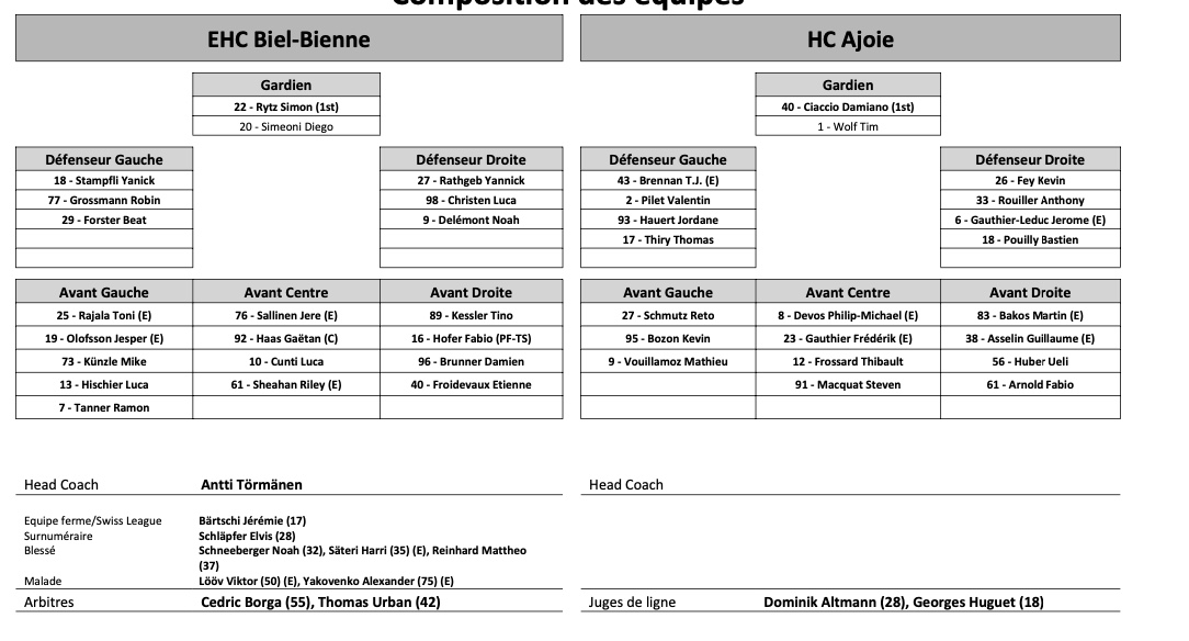 Formation des équipes et joueurs indisponibles pour le match Bienne vs Ajoie 10/12/2022 Follow SwissHabs Derniers articles Il y a 4 minutes Ajoie se renforce avec Tarmo Reunanen pour cette fin de saison Il y a 15 minutes Trois joueurs absents du côté de Genève Il y a une heure Des nouvelles de l'infirmerie du HC Bienne Il y a 3 heures Nolan Diem portera les couleurs d'Ajoie Il y a 4 heures Le point sur l'effectif du CP Berne
