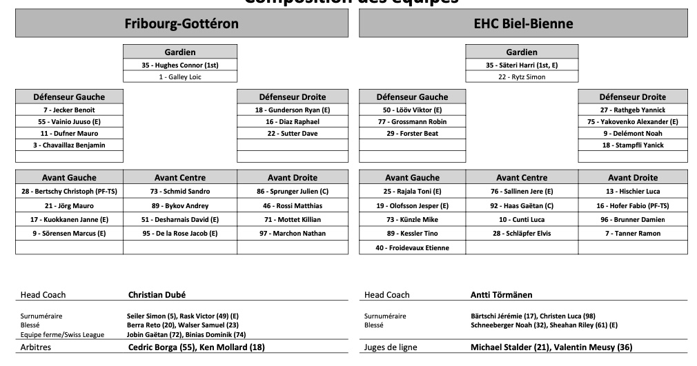 Formation des équipes et joueurs indisponibles pour le match Fribourg vs Bienne 13/01/2023 Follow SwissHabs Derniers articles Il y a une heure Berne aurait porté son choix sur Ville Peltonen Il y a une heure 700 assists en NHL pour Nikita Kucherov Il y a 2 heures Tyler Myers sans doute sur le départ Il y a 2 heures Un 15e but pour Timo Meier mais une défaite pour les Devils Il y a 11 heures Retour de l'action en NHL : quelques chiffres à retenir