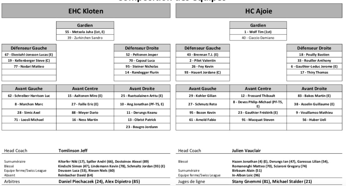 Formation des équipes et joueurs indisponibles pour le match Kloten vs Ajoie 20/12/2022 Follow SwissHabs Derniers articles Il y a 50 minutes Le point sur l'effectif du CP Berne Il y a une heure JO : quel impact sur le développement du hockey aux Etats-Unis ? Il y a une heure Raphael Diaz va faire son retour au jeu face à Fribourg Il y a 2 heures Des nouvelles très mitigées concernant Marcus Sörensen Il y a 2 heures Un autre gardien à disposition du HC Ajoie