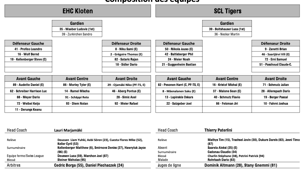 Formation des équipes et joueurs indisponibles pour le match Kloten vs Langnau 06/03/2025 Follow SwissHabs Derniers articles Il y a 3 minutes Grégory Hofmann en lice pour le plus beau but de cette saison de Champions Hockey League Il y a une heure Une nouvelle signature du côté d'Ajoie Il y a 2 heures Un match de suspension et une amende contre Jens Nater Il y a 2 heures Hockey aux JO : la hockey a cartonné avant tout sur le web et les app Il y a 3 heures Markus Korhonen va rejoindre Kloten et Simo Vehviläine prendre sa place