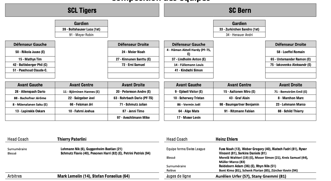 Formation des équipes et joueurs indisponibles pour le match Langnau vs Berne 15/11/2025 Follow SwissHabs Derniers articles Il y a 17 heures Régis Fuchs sera honoré cette semaine Il y a 18 heures Prolongations de contrats à l'EHC Coire Il y a 20 heures Diego Kostner absent quelques semaines Il y a 20 heures Pontus Åberg passera les prochains matchs à Kloten Il y a 22 heures Deux autres renforts pour le HC Viège