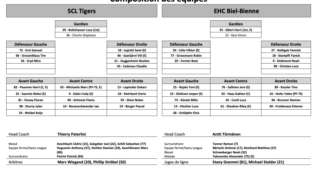 Formation des équipes et joueurs indisponibles pour le match Langnau vs Bienne 09/12/2022 Follow SwissHabs Derniers articles Il y a 7 minutes Formation des équipes et joueurs indisponibles pour le match Davos vs Langnau Il y a 9 minutes Formation des équipes et joueurs indisponibles pour le match Rapperswil vs Genève Il y a 11 minutes Formation des équipes et joueurs indisponibles pour le match Ambri vs Lausanne Il y a 12 minutes Formation des équipes et joueurs indisponibles pour le match Zoug vs Fribourg Il y a 15 minutes Formation des équipes et joueurs indisponibles pour le match Zurich vs Ajoie