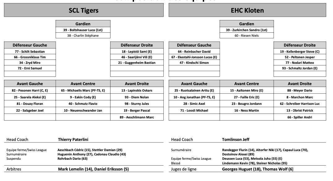 Formation des équipes et joueurs indisponibles pour le match Langnau vs Kloten 25/11/2022 Follow SwissHabs Derniers articles Il y a 7 heures Retour de l'action en NHL : quelques chiffres à retenir Il y a 8 heures Lian Bichsel de retour, Nino Niederreiter blessé Il y a 9 heures Pénurie d’entraîneurs suisses d’élite en hockey sur glace Il y a 11 heures Un mois d'absence pour Sidney Crosby Il y a 12 heures Changements au sein du département athlétique des SCL Tigers et SCL Young Tigers