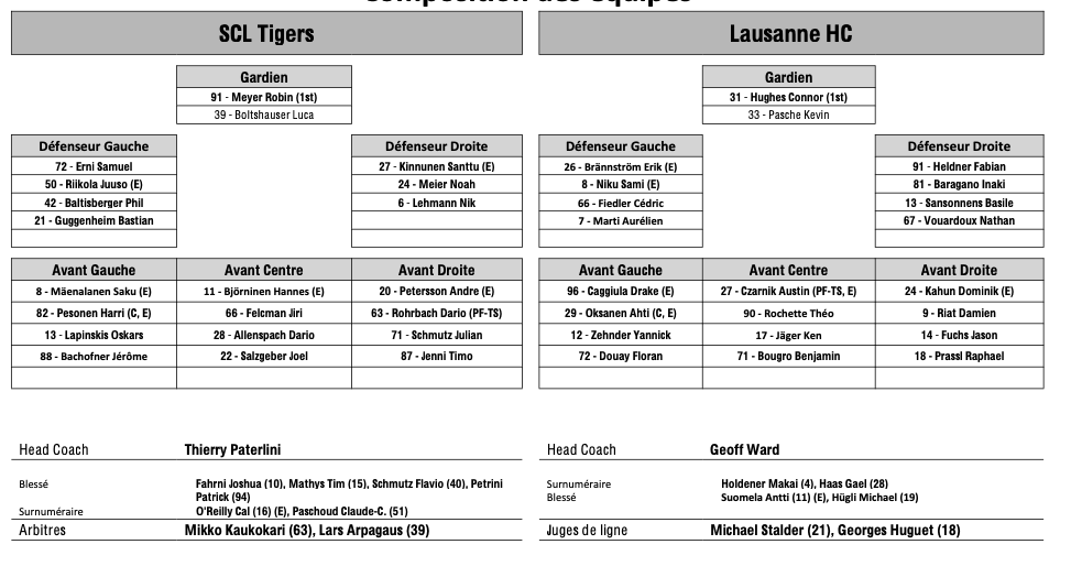 Formation des équipes et joueurs indisponibles pour le match Langnau vs Lausanne 24/10/2025 Follow SwissHabs Derniers articles Il y a 4 minutes Ajoie se renforce avec Tarmo Reunanen pour cette fin de saison Il y a 15 minutes Trois joueurs absents du côté de Genève Il y a une heure Des nouvelles de l'infirmerie du HC Bienne Il y a 3 heures Nolan Diem portera les couleurs d'Ajoie Il y a 4 heures Le point sur l'effectif du CP Berne