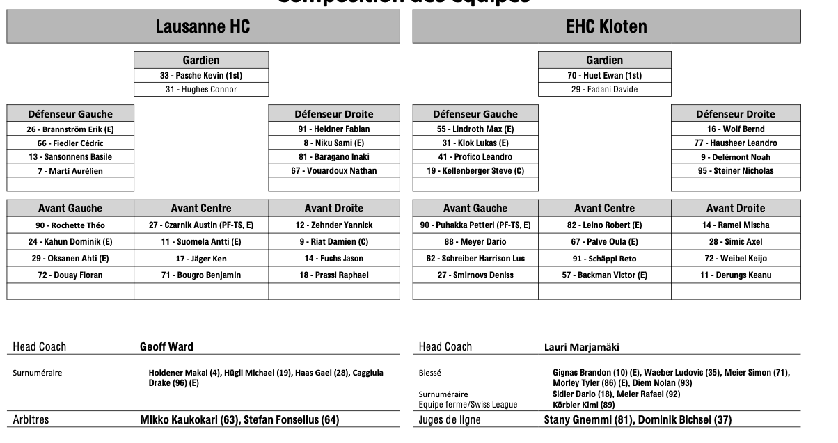 Formation des équipes et joueurs indisponibles pour le match Lausanne vs Kloten 01/10/2025 Follow SwissHabs Derniers articles Il y a 14 heures Régis Fuchs sera honoré cette semaine Il y a 15 heures Prolongations de contrats à l'EHC Coire Il y a 17 heures Diego Kostner absent quelques semaines Il y a 17 heures Pontus Åberg passera les prochains matchs à Kloten Il y a 19 heures Deux autres renforts pour le HC Viège