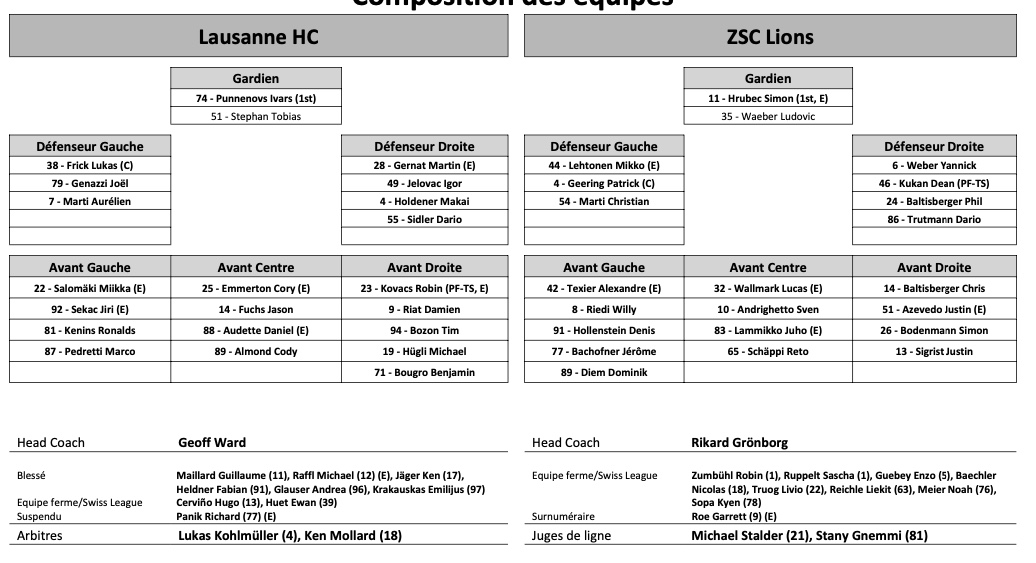 Formation des équipes et joueurs indisponibles pour le match Lausanne vs Zurich 10/12/2022 Follow SwissHabs Derniers articles Il y a 4 minutes Ajoie se renforce avec Tarmo Reunanen pour cette fin de saison Il y a 15 minutes Trois joueurs absents du côté de Genève Il y a une heure Des nouvelles de l'infirmerie du HC Bienne Il y a 3 heures Nolan Diem portera les couleurs d'Ajoie Il y a 4 heures Le point sur l'effectif du CP Berne