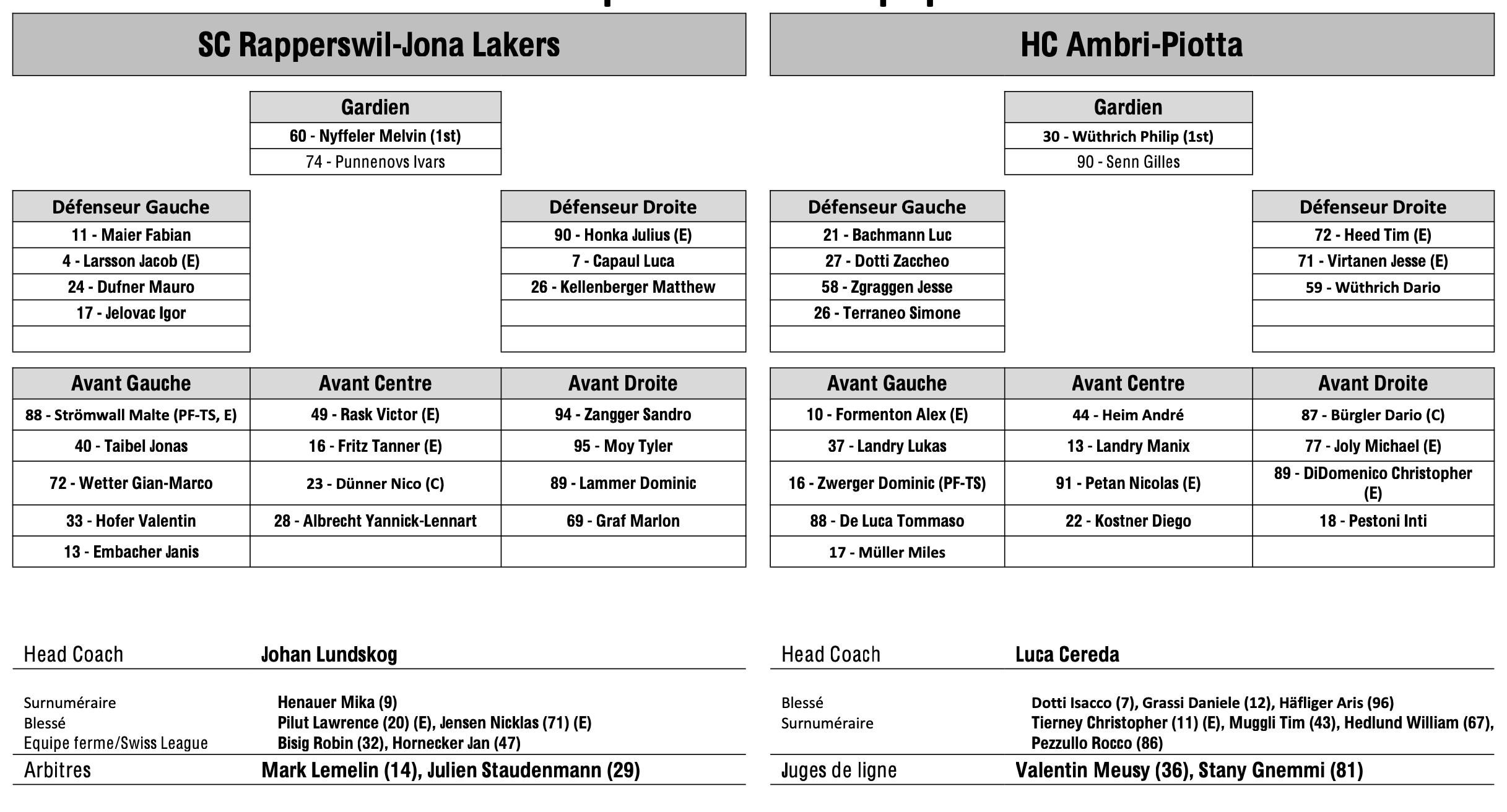Formation des équipes et joueurs indisponibles pour le match Rapperswil vs Ambri 04/10/2025 Follow SwissHabs Derniers articles Il y a 14 heures Régis Fuchs sera honoré cette semaine Il y a 15 heures Prolongations de contrats à l'EHC Coire Il y a 17 heures Diego Kostner absent quelques semaines Il y a 17 heures Pontus Åberg passera les prochains matchs à Kloten Il y a 19 heures Deux autres renforts pour le HC Viège