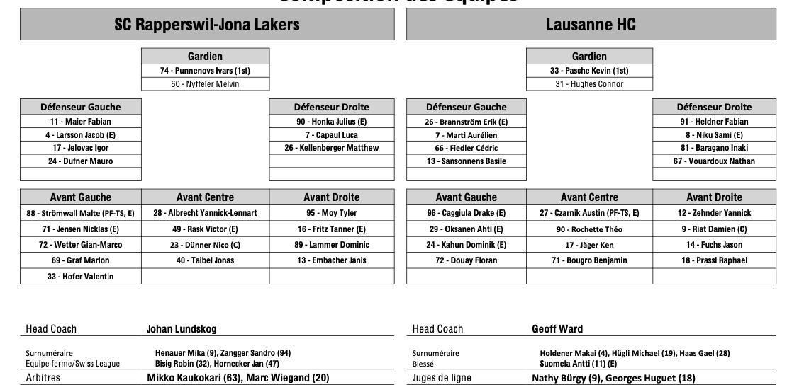 Formation des équipes et joueurs indisponibles pour le match Rapperswil vs Lausanne 19/09/2025 Follow SwissHabs Derniers articles Il y a 17 heures Régis Fuchs sera honoré cette semaine Il y a 18 heures Prolongations de contrats à l'EHC Coire Il y a 20 heures Diego Kostner absent quelques semaines Il y a 20 heures Pontus Åberg passera les prochains matchs à Kloten Il y a 22 heures Deux autres renforts pour le HC Viège