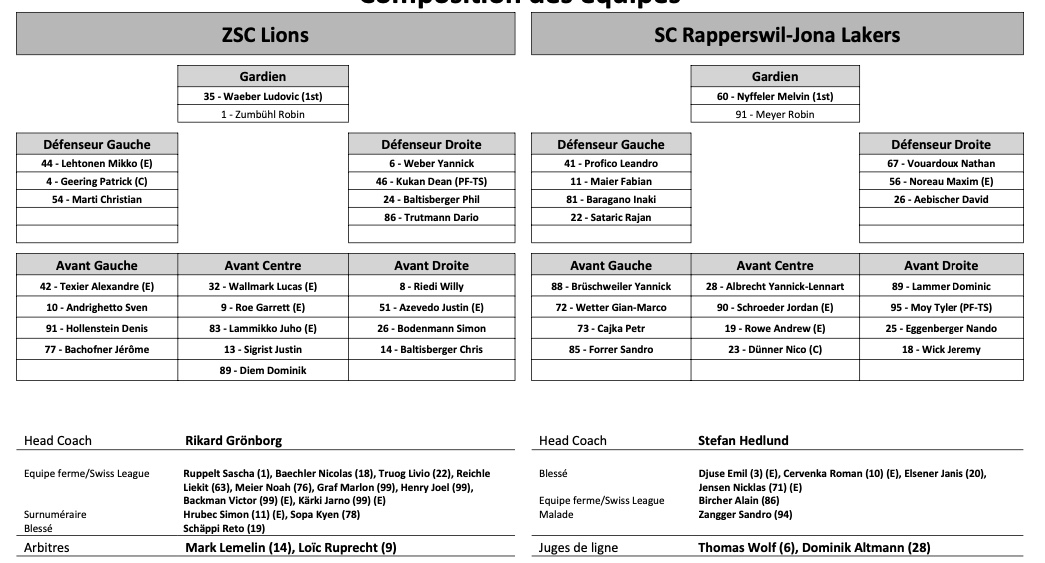 Formation des équipes et joueurs indisponibles pour le match Zurich vs Rapperswil 07/12/2022 Follow SwissHabs Derniers articles Il y a 2 heures Les Scorer King de Swiss League vont être tous mignons Il y a 3 heures La cuvée de 2026 du Temple de la renommée de la LHJMQ Il y a 4 heures Echange entre les Penguins de Pittsburgh et l'Avalanche du Colorado Il y a 5 heures Formation des équipes et joueurs indisponibles pour le match Davos vs Langnau Il y a 5 heures Formation des équipes et joueurs indisponibles pour le match Rapperswil vs Genève