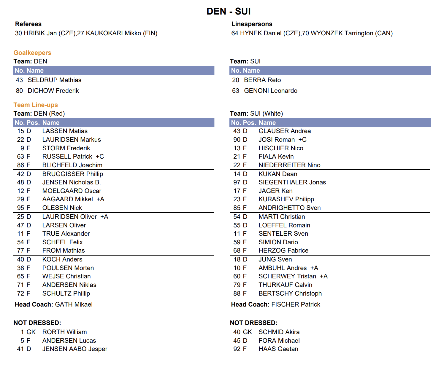 Formation des équipes pour le match Suisse vs Danemark 18/05/2024 Follow SwissHabs Derniers articles Il y a 29 secondes Des nouvelles de l'infirmerie du HC Bienne Il y a une heure Nolan Diem portera les couleurs d'Ajoie Il y a 2 heures Le point sur l'effectif du CP Berne Il y a 2 heures JO : quel impact sur le développement du hockey aux Etats-Unis ? Il y a 3 heures Raphael Diaz va faire son retour au jeu face à Fribourg