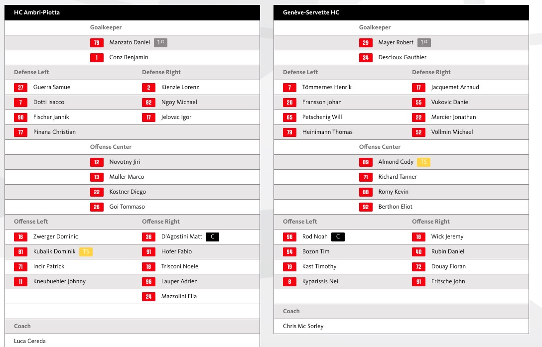Formation des équipes pour les matchs du jour en National League 29/09/2018 Follow SwissHabs Derniers articles Il y a une heure Les Scorer King de Swiss League vont être tous mignons Il y a une heure La cuvée de 2026 du Temple de la renommée de la LHJMQ Il y a 3 heures Echange entre les Penguins de Pittsburgh et l'Avalanche du Colorado Il y a 3 heures Formation des équipes et joueurs indisponibles pour le match Davos vs Langnau Il y a 3 heures Formation des équipes et joueurs indisponibles pour le match Rapperswil vs Genève