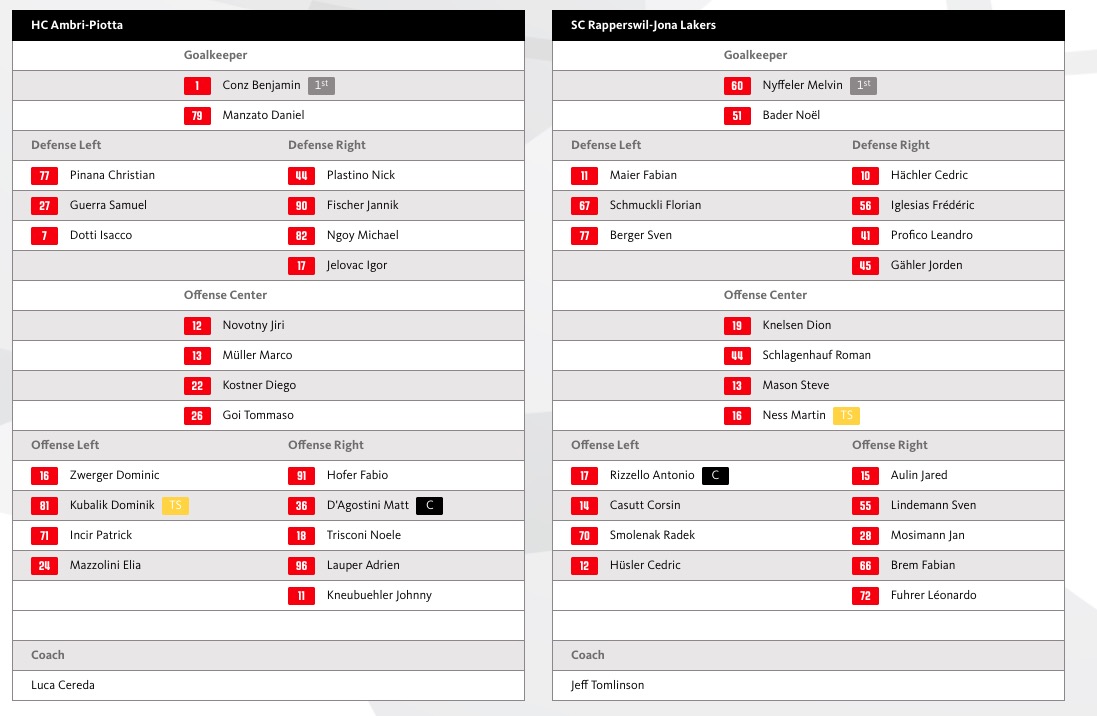 Formation des équipes pour les matchs du jour en National League 19/10/2018 Follow SwissHabs Derniers articles Il y a une heure Laure Mériguet revient sur son expérience olympique Il y a une heure Reto Berra et Damiano Ciaccio ne terminent pas le match Il y a 2 heures La folle et coûteuse nuit dorée de Team USA Il y a 2 heures Seattle prolonge deux attaquants de soutien Il y a 2 heures Retour complet sur la soirée de National League