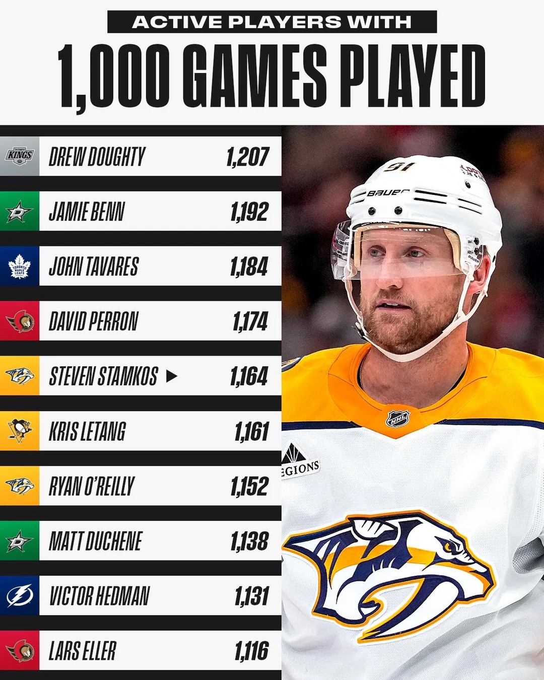 Joueurs actifs en NHL avec plus de 1'000 matchs au compteur 03/09/2025 Follow SwissHabs Derniers articles Il y a 4 heures Les Scorer King de Swiss League vont être tous mignons Il y a 4 heures La cuvée de 2026 du Temple de la renommée de la LHJMQ Il y a 6 heures Echange entre les Penguins de Pittsburgh et l'Avalanche du Colorado Il y a 6 heures Formation des équipes et joueurs indisponibles pour le match Davos vs Langnau Il y a 6 heures Formation des équipes et joueurs indisponibles pour le match Rapperswil vs Genève