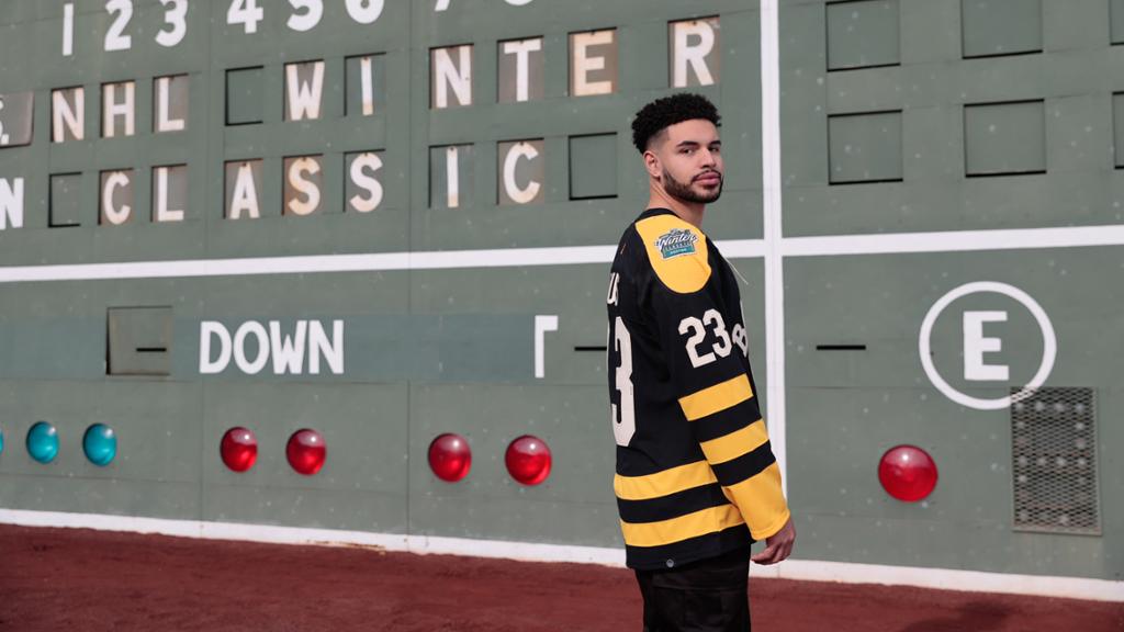 Le maillot des Bruins pour la Classique d'hiver de la LNH s'inspire d'une variété de looks des Bruins au fil des ans. Les grosses rayures dorées sur une base noire font de ce chandail une pièce unique de Boston. Les embellissements comportent des touches de blanc vintage - une couleur beige clair destinée à évoquer un textile ancien, comme si ce vêtement avait été trouvé dans une malle au fond d'un vieux magasin de skate.