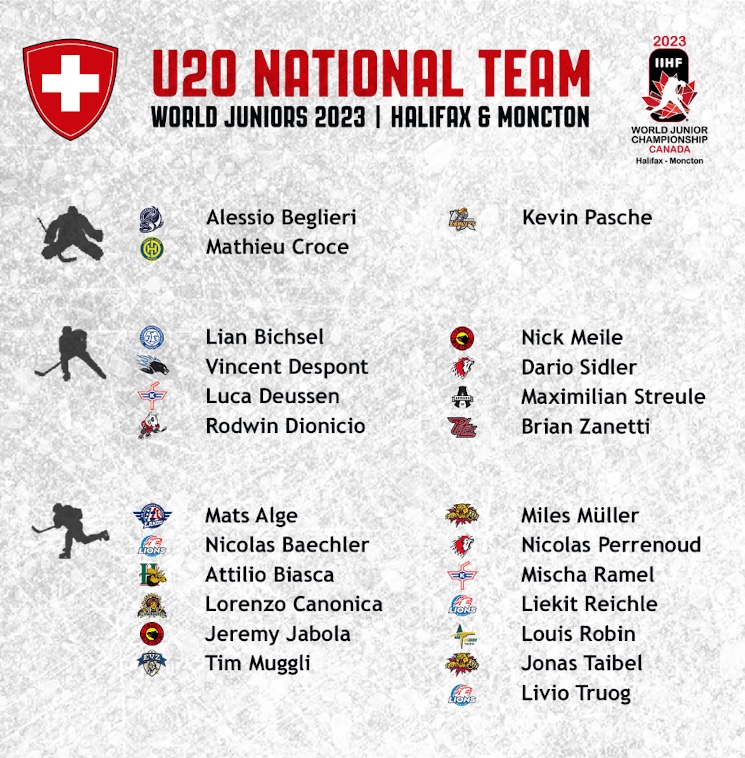 La sélection pour le Championnat du monde U20, où la Suisse entrera en lice le 26 décembre à Moncton, comprend trois gardiens, 8 défenseurs et 13 attaquants. Les défenseurs Darren Boss et Simone Terraneo et les attaquants Joel Henry et Mattheo Reinhard sont contraints de quitter le groupe et de retourner en Suisse. « La décision n’a pas été facile à prendre pour moi et mon staff. Depuis l’arrivée au Canada, tous les joueurs ont donné le meilleur d’eux-mêmes pour faire partie du cadre du CM. Je tiens à remercier les joueurs qui ont dû nous quitter pour leur grand engagement », explique le head coach Marco Bayer.