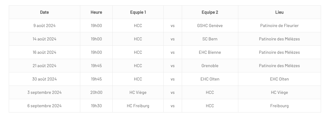 Le calendrier des matchs de préparation de La Chaux-de-Fonds 01/06/2024 Follow SwissHabs Derniers articles Il y a 29 secondes Des nouvelles de l'infirmerie du HC Bienne Il y a une heure Nolan Diem portera les couleurs d'Ajoie Il y a 2 heures Le point sur l'effectif du CP Berne Il y a 2 heures JO : quel impact sur le développement du hockey aux Etats-Unis ? Il y a 3 heures Raphael Diaz va faire son retour au jeu face à Fribourg
