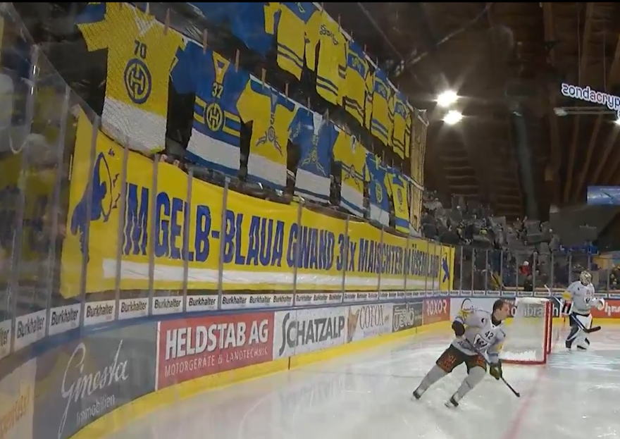 Leur tifo affichait en effet 31 maillots, un pour chacun de leurs titres, avec le message : « Combien de maillots de champion possède Gottéron ? » (meilleure photo par ici)