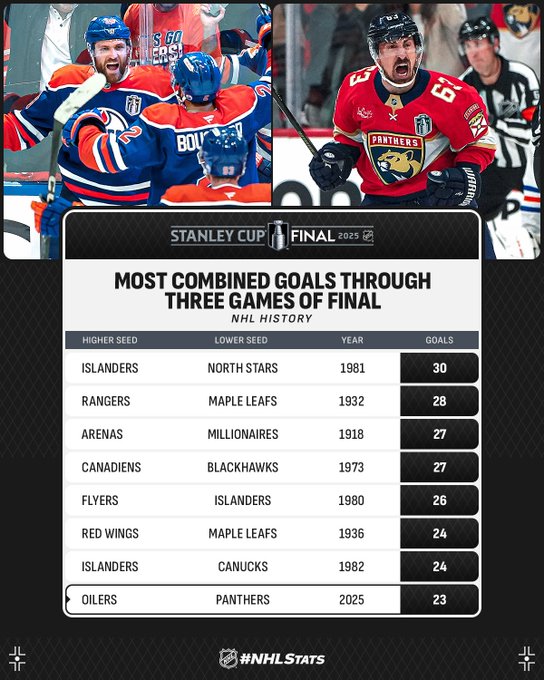Il faut remonter à 1982, lors de la série entre les Islanders de New York et les Canucks de Vancouver, pour retrouver un début de finale aussi prolifique (24 buts après trois matchs).