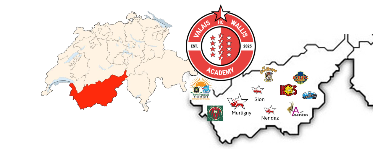 Fruit de la collaboration entre le MCHC-PDS HC Association Moju (MontheyChablais-Portes du Soleil), le HC Valais-Chablais Martigny-Sion et le HC Sierre, cette nouvelle entité, ouverte à tous les clubs valaisans, a pour vocation de structurer et de renforcer le développement des jeunes talents du canton. Tous les clubs amateurs et formateurs du canton sont invités à rejoindre l’Académie cantonale, pour qu’ensemble, il soit possible de faire rayonner le hockey valaisan et donner aux jeunes les moyens d’atteindre leur plein potentiel.
