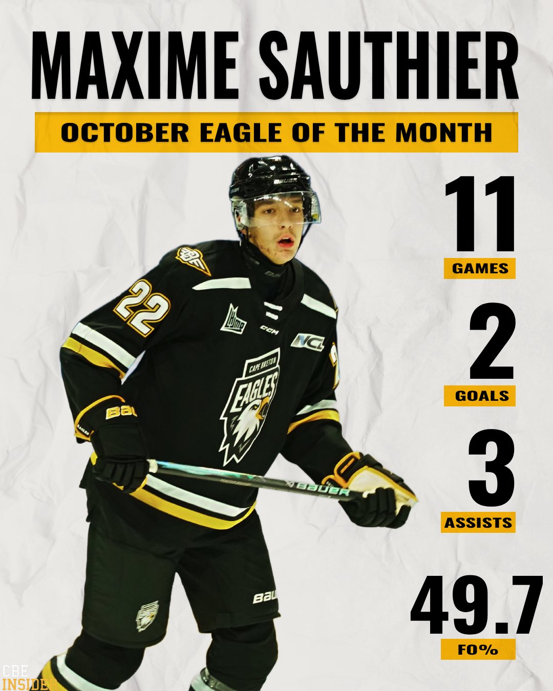 Le jeune attaquant s’est distingué en menant les Eagles au classement des pointeurs ce mois-ci avec un total de 5 points, incluant son tout premier but en carrière.