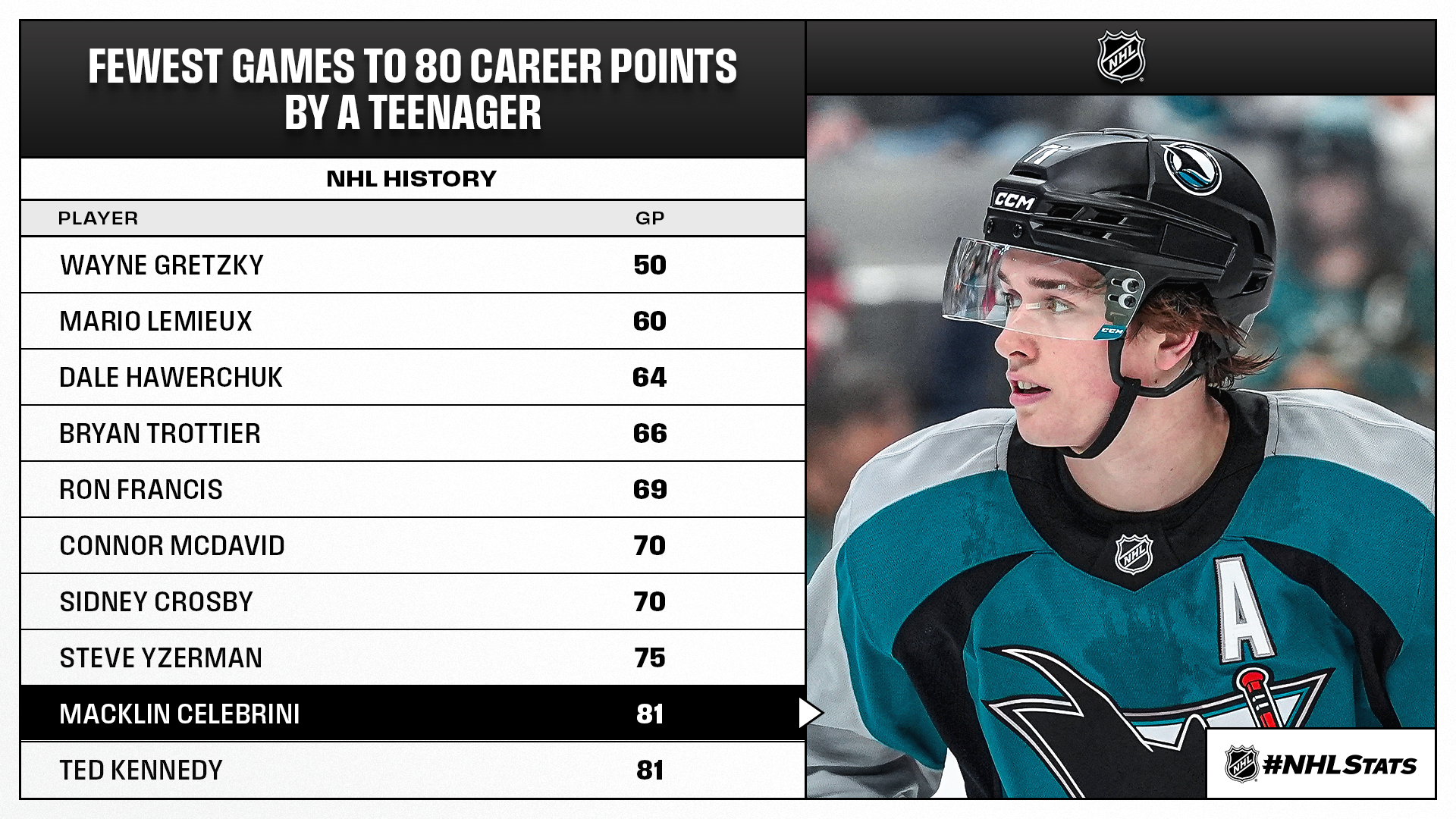 Moins de matchs de NHL pour atteindre les 80 points par un joueur de moins de 20 ans 31/10/2025 Follow SwissHabs Derniers articles Il y a 17 heures Régis Fuchs sera honoré cette semaine Il y a 18 heures Prolongations de contrats à l'EHC Coire Il y a 20 heures Diego Kostner absent quelques semaines Il y a 20 heures Pontus Åberg passera les prochains matchs à Kloten Il y a 22 heures Deux autres renforts pour le HC Viège