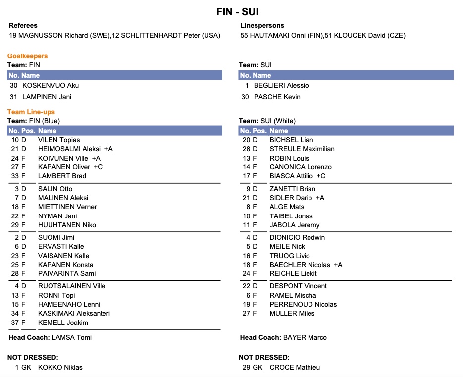 Mondiaux U20 : formations des équipes pour le match Finlande vs Suisse 26/12/2022 Follow SwissHabs Derniers articles Il y a une heure Echange entre les Penguins de Pittsburgh et l'Avalanche du Colorado Il y a 2 heures Formation des équipes et joueurs indisponibles pour le match Davos vs Langnau Il y a 2 heures Formation des équipes et joueurs indisponibles pour le match Rapperswil vs Genève Il y a 2 heures Formation des équipes et joueurs indisponibles pour le match Ambri vs Lausanne Il y a 2 heures Formation des équipes et joueurs indisponibles pour le match Zoug vs Fribourg