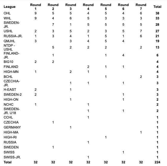 Un total de 27 joueurs nés en Suède ont été repêchés, le plus grand nombre depuis 2020 (32).