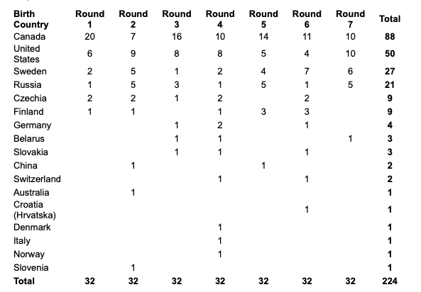 Un total de 88 joueurs nés au Canada ont été sélectionnés, soit le plus grand nombre depuis 2016 (89).