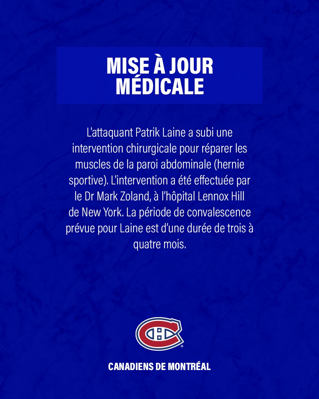 Une longue absence pour Patrik Laine 25/10/2025 Follow SwissHabs Derniers articles Il y a 40 minutes Le point sur l'effectif du CP Berne Il y a une heure JO : quel impact sur le développement du hockey aux Etats-Unis ? Il y a une heure Raphael Diaz va faire son retour au jeu face à Fribourg Il y a 2 heures Des nouvelles très mitigées concernant Marcus Sörensen Il y a 2 heures Un autre gardien à disposition du HC Ajoie