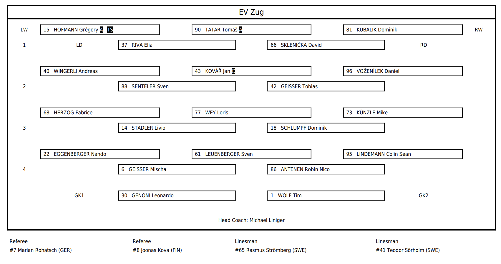 Formation des équipes pour le match Luleå vs Zoug