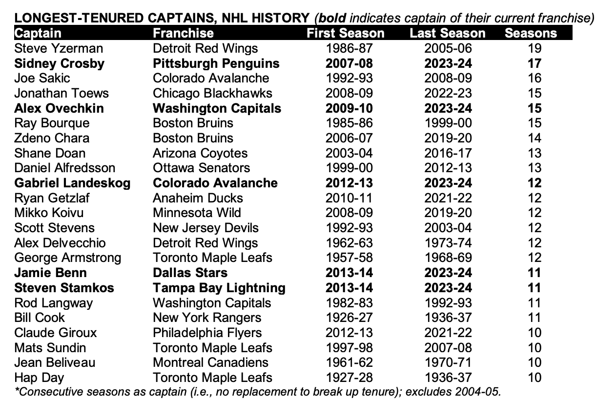 Capitaines les plus fidèles dans l'histoire de la NHL